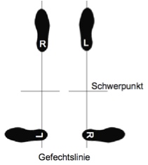 Jeder Fechter hat seine individuelle Gefechtslinie (Standlinie), welche die rechte und linke Ferse miteinander verbindet. Bei linearen Bewegungen ist die gemeinsame Gefechtslinie ein Mittel aus denen der Fechter. Im Langschwertfechten findet die linke, wie die rechte Grundstellung gleichermaßen Anwendung.