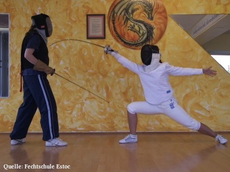 Durch die "Reise" des Fechtsports von Deutschland über Italien und Frankreich und durch die Spezielisierung auf das Stoßfechten (mit Ausnahme des Säbels) sind die "alten" Waffen, wie das Schwert in Vergessenheit geraten. - Fast...!